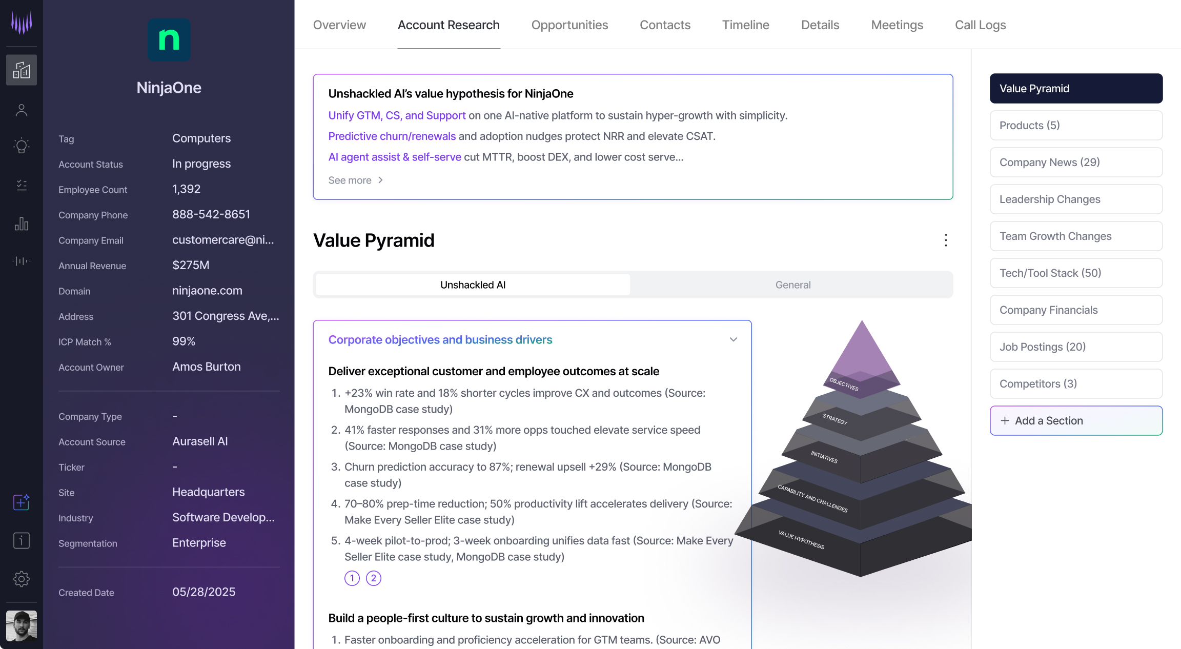 Stop chasing information. Aurasell’s AI instantly maps account drivers, uncovers business priorities, and delivers a tailored value hypothesis, so your team can plan, prospect, and win with precision.