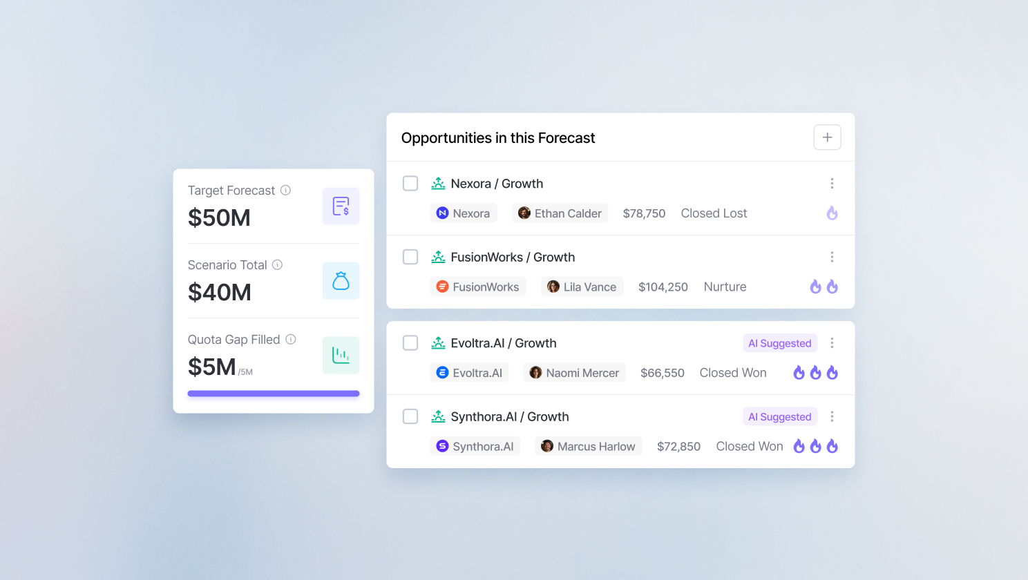 Turn every rep into a top performer with AI-driven coaching, get forecasts you can trust, and plan for any scenario with real-time insights—so your team makes smarter, data-backed decisions every step of the way.