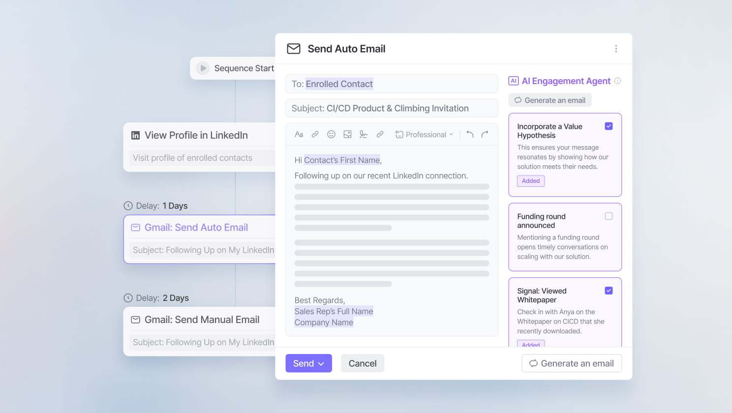 Instantly uncover key account details, surface the best opportunities, and engage leads with automated, personalized sequences—so your team spends less time guessing and more time closing.