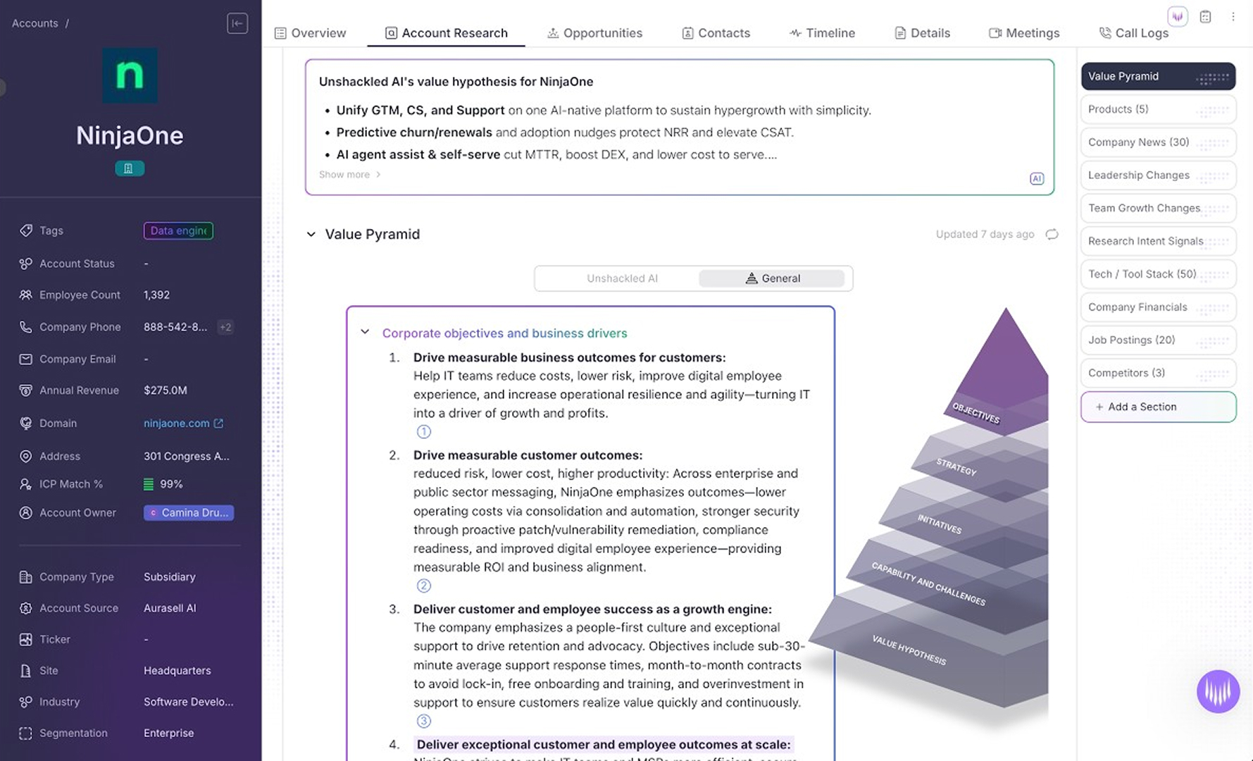 Stop chasing information. Aurasell’s AI instantly maps account drivers, uncovers business priorities, and delivers a tailored value hypothesis, so your team can plan, prospect, and win with precision.