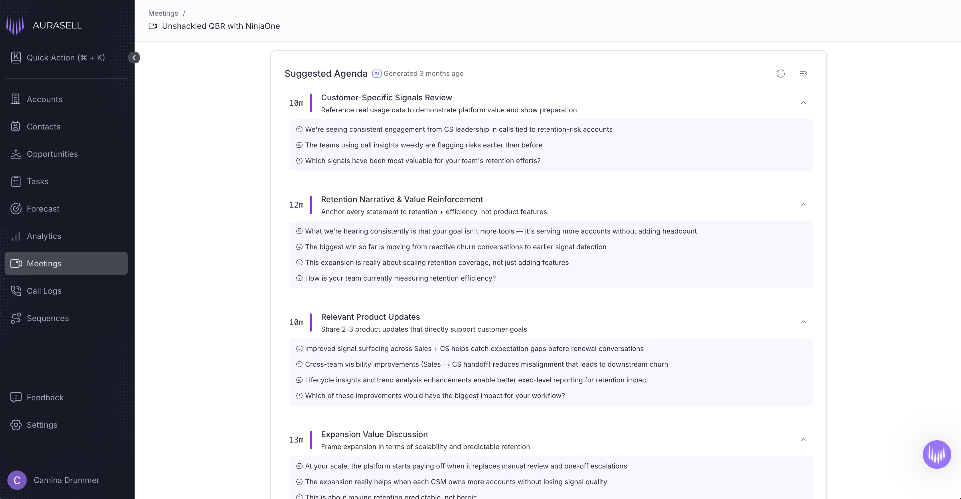 Let Aurasell agents research your accounts to your reps can create value pyramids and value hypothesis' in minutes. It shouldn't take hours to read and understand annual reports or public filing documents.